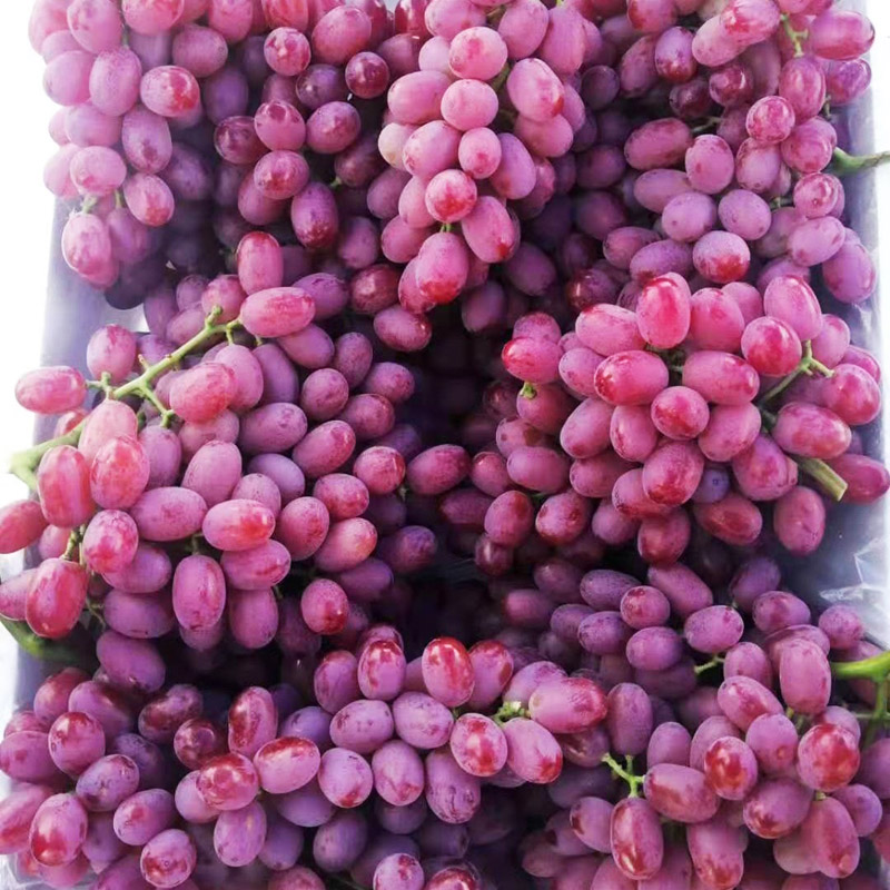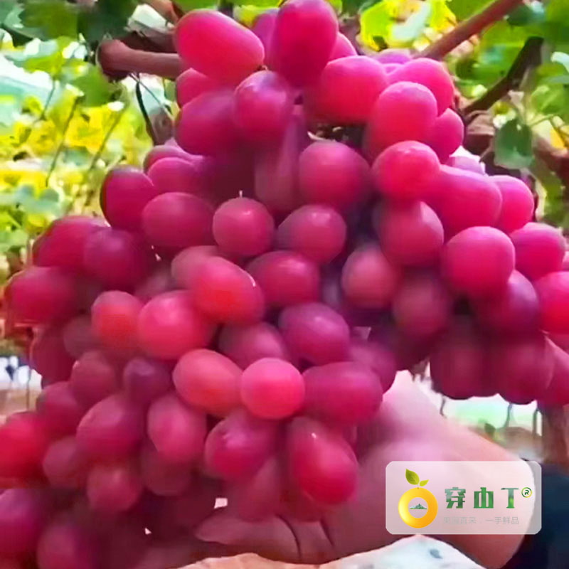 果实味美色艳。果穗圆锥形,中等大小,而果粒整齐紧凑,穗重800克左右,最大穗重1600克。果粒椭圆稍长型,颜色透亮,果霜鲜艳,单粒重6到8克,可溶性固形物含量20%—25%,糖酸比25.9:1,果肉浅红色,肉质脆能切片,既可鲜食又可制干。果皮脆,可以随果实一起食用。